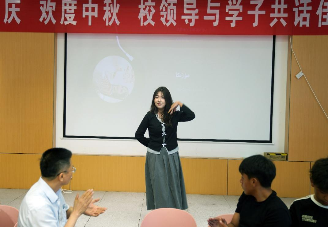 李松志代表學校向全體同學致以節日的誠摯問候與美好祝福。他回顧了新中國發展取得的輝煌成就,闡釋了中秋文化所蘊含的團圓意蘊與家國情懷,并勉勵同學們要將個人成長與國家發展緊密結合,珍惜在校時光,勤奮學習、錘煉品格、提升本領,努力成長為可堪大用、能擔重任的時代新人,為實現中華民族偉大復興貢獻青春力量。