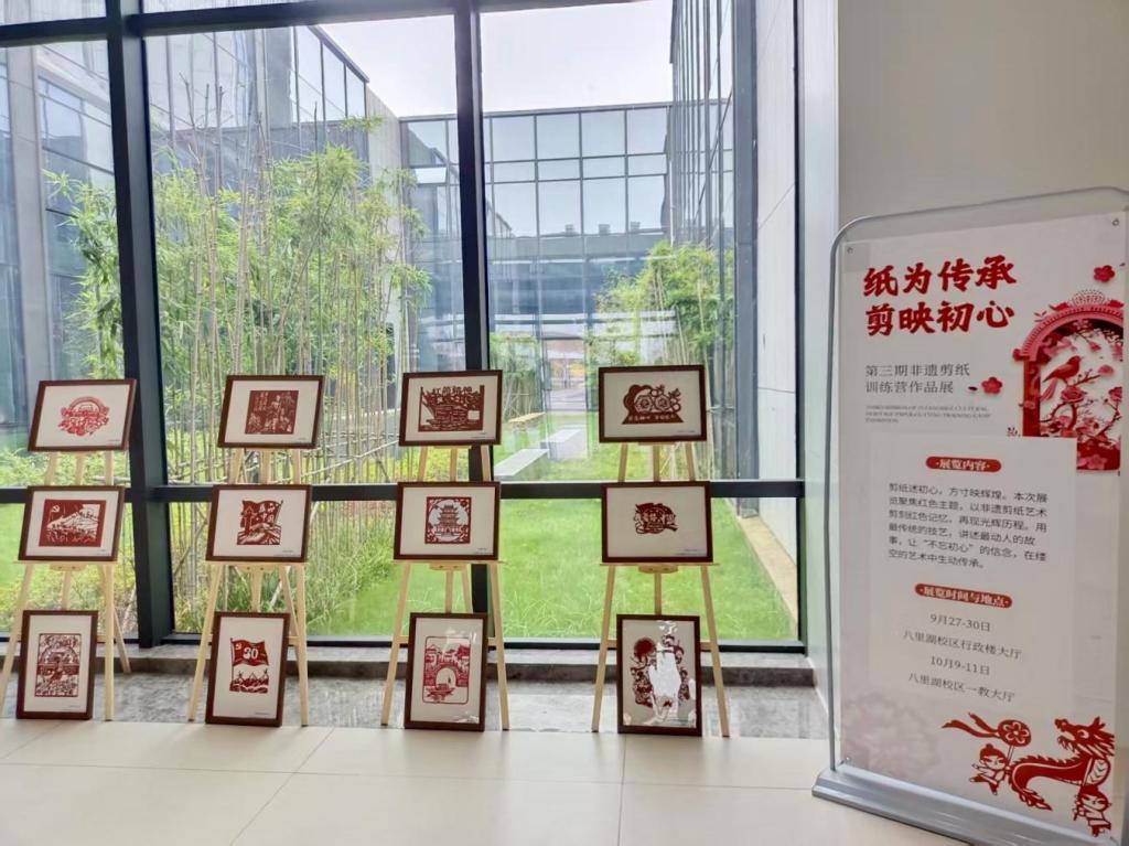 為弘揚(yáng)中華優(yōu)秀傳統(tǒng)文化,傳承紅色基因,推動非物質(zhì)文化遺產(chǎn)保護(hù)與校園美育深度融合,我校“紙為傳承,剪映初心”第三期非遺剪紙訓(xùn)練營作品展于9月27日至10月11日在八里湖校區(qū)順利展出。本次展覽以“剪紙述初心,方寸映輝煌”為主題,集中展示了訓(xùn)練營學(xué)員歷經(jīng)三個月精心創(chuàng)作的三十余幅剪紙作品,以非遺技藝剪刻紅色記憶,再現(xiàn)黨的光輝歷程與時代風(fēng)采。