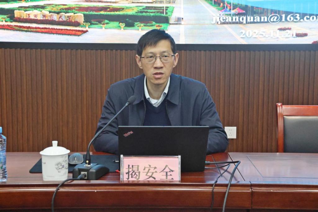 揭安全圍繞教改課題的選題策略、申報要點與材料撰寫等方面進行系統(tǒng)講解。他結合江西省教學成果獎評選及教改課題立項實際,對課題申報中常見的幾類問題,如選題價值不突出、研究問題提煉不清、目標空泛、缺乏實踐檢驗等進行深入分析,并針對性地提出改進建議。