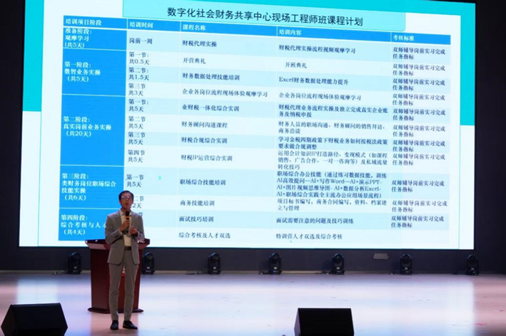 講座伊始會計學(xué)院副院長譚玉林發(fā)表動員講話。他從“宏觀形勢+學(xué)院實踐”雙維度展開,首先分析當(dāng)前會計行業(yè)發(fā)展態(tài)勢:隨著數(shù)智化轉(zhuǎn)型加速,傳統(tǒng)財務(wù)崗位需求結(jié)構(gòu)調(diào)整,“財稅一體化”“智能財務(wù)運維”等新型崗位缺口擴大,既為畢業(yè)生帶來挑戰(zhàn),更提供了轉(zhuǎn)型機遇。