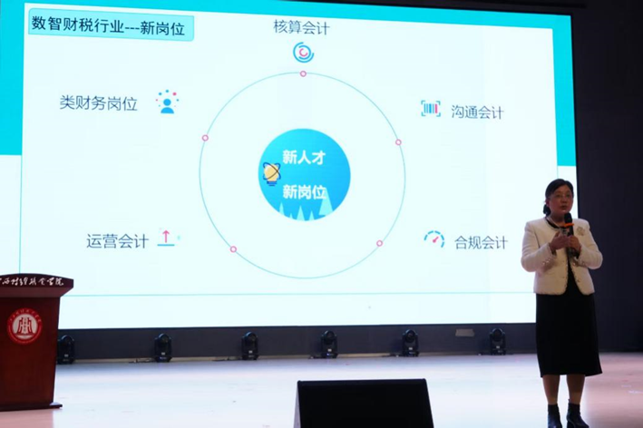 作為業(yè)財稅領(lǐng)域深耕十余年的專家,姜慧萍以“數(shù)智化浪潮下會計人才的職業(yè)破局之路”為主題,帶來干貨滿滿的指導(dǎo)。首先從企業(yè)實際需求切入,深度剖析當(dāng)前就業(yè)市場的“供需匹配關(guān)鍵點”:傳統(tǒng)“記賬型”會計崗位競爭激烈,但掌握大數(shù)據(jù)財務(wù)分析、智能財稅系統(tǒng)操作、財稅風(fēng)險管控的“復(fù)合型人才”,已成為企業(yè)爭搶的核心資源。結(jié)合自身服務(wù)的20余家大中型企業(yè)案例,她具體列舉了新技術(shù)催生的崗位新需求 ——如“財務(wù)數(shù)據(jù)分析師”需熟練運用 Python工具,“智能財稅顧問”需精通電子發(fā)票管理、稅務(wù)數(shù)字化申報等,讓畢業(yè)生對“數(shù)智會計崗位”有了直觀認(rèn)知。