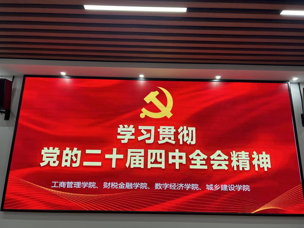 為深入學習貫徹黨的二十屆四中全會精神,切實統一黨員教師思想和行動,11月18日,城鄉建設學院黨總支、財稅金融學院黨總支、數字經濟學院黨總支、工商管理學院黨總支聯合開展主題黨日活動,各學院全體黨員和教師參加此次活動。
