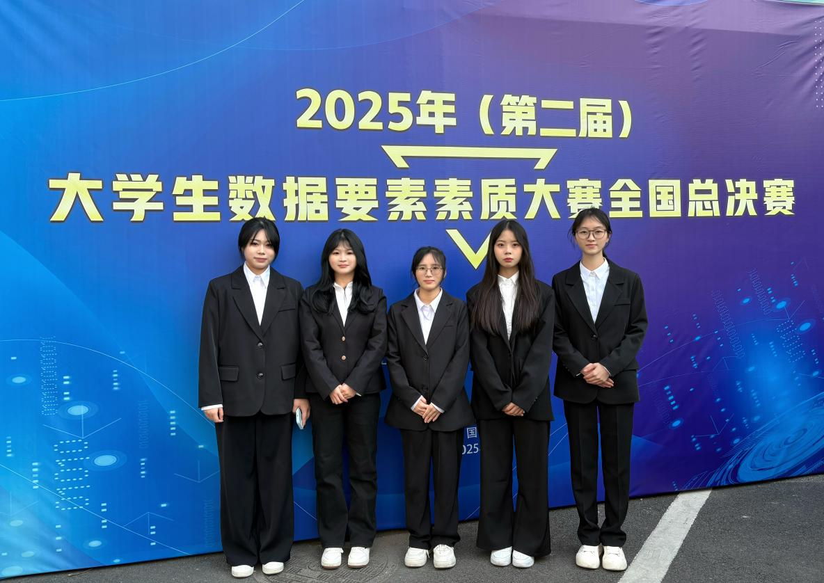 為積極響應國家經濟社會數字化轉型的迫切需求,加速培養具備高水平數據素養的復合型人才,2025年第二屆大學生數據要素素質大賽全國總決賽于12月7日在江西財經大學圓滿落幕。由數字經濟學院謝林霞、黃宏珍、胡可瑩、鐘丹、李蔚蔚五位同學組成的參賽團隊,在黃迎、曹計兩位老師的指導下,憑借扎實的專業功底、出色的實踐應用能力和高效的團隊協作,從全國眾多參賽隊伍中脫穎而出,成功斬獲專科組全國一等獎。